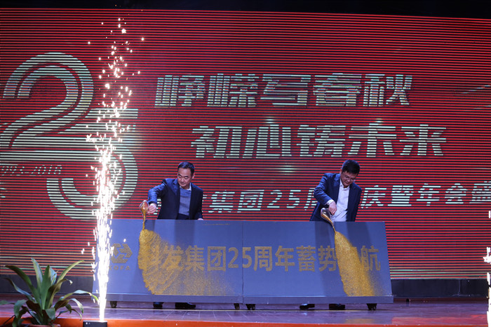 董事長胥梓斌先生致新年賀詞,慷慨激昂的講話贏得了現(xiàn)場陣陣熱烈掌聲。董事長和總裁共同啟動鎏金沙儀式,象征新征程即將開始,科發(fā)集團將揚帆起航,駛向下一個更加輝煌的二十五年。
